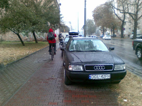 Na ostatnich 3km nie było już co pompować dętka, opona i obręcz pewnie też dostały w kość(kocią - znaczy w koci łeb). Kasia czekała już piątą godzinę na mecie, nie było sensu przedłużać agonii tylnego koła i szarpać się z łatkami zmarzniętymi palcami.